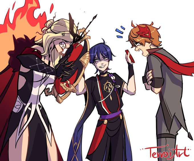 Good coworker relationships are important :') #GenshinImpact #genshinimpactfanart #scaramouche #lasignora #childe #原神
