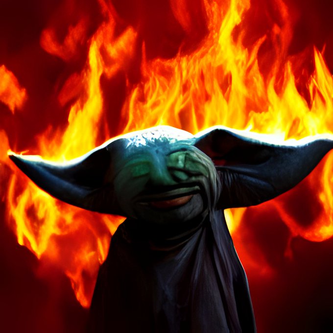 Various "Yoda burning in hell" prompts