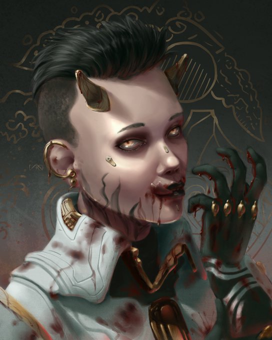 Almost forgot to post this! 'Twas my birthday gift to @Deviant_Lukos of Operator Lukos himself, and that infamous blood sigil of his. Ya nasty, but gotta love ya. 😜❤️ #Warframe