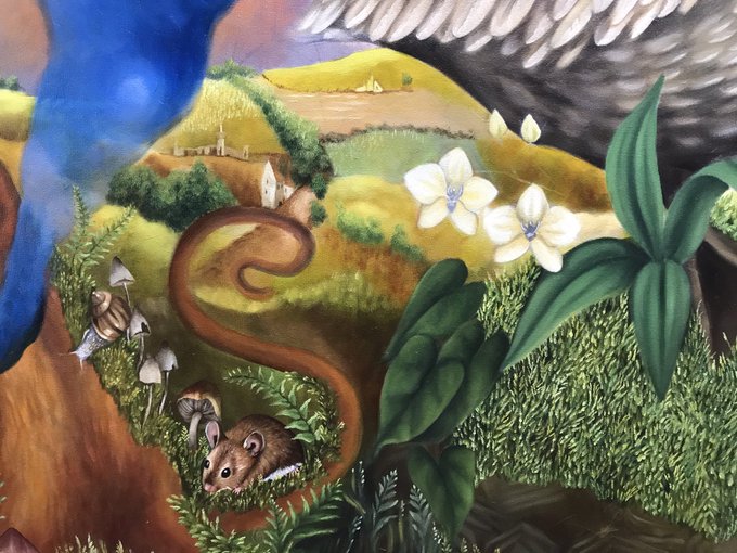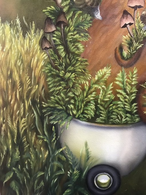 Es complicado sacar una buena foto porque está debajo de un tragaluz, pero ahí van apareciendo los detalles del primer plano. Trabajo en proceso.