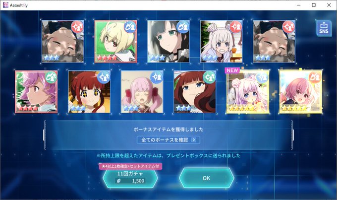 星5一体以上確定ガチャ結果