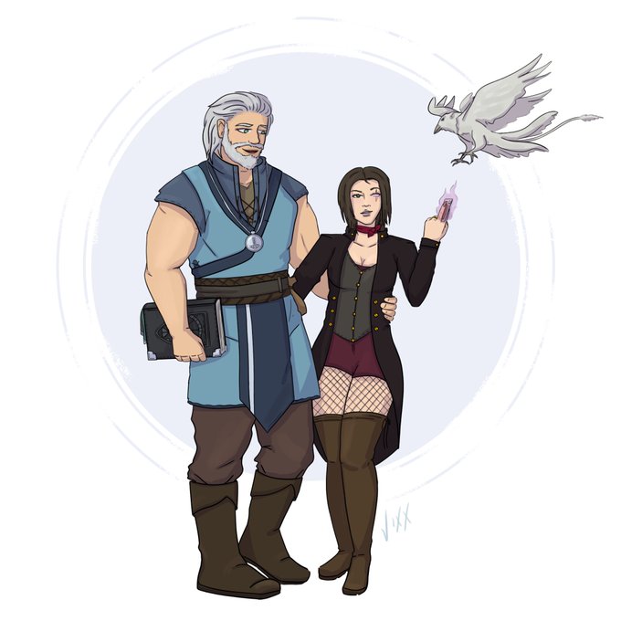 Gosh, I'm bad at keeping this page up to date 🤣 Here's one of my favourite couples, Grey & Ellis, The Greyhelms. Grey is a cleric/wizard played by @DM_Shanks and Ellis is a warlock played by me.