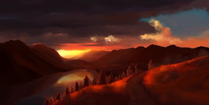 #ArtistOnTwitter #environmentart #landscape #sunset