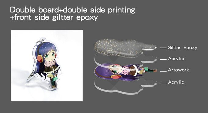 Hi,guys!The printing process of key chain&standee has been upgraded!We change to PET printing from UV printing. The printing clarity will be improved,more vivid colors.