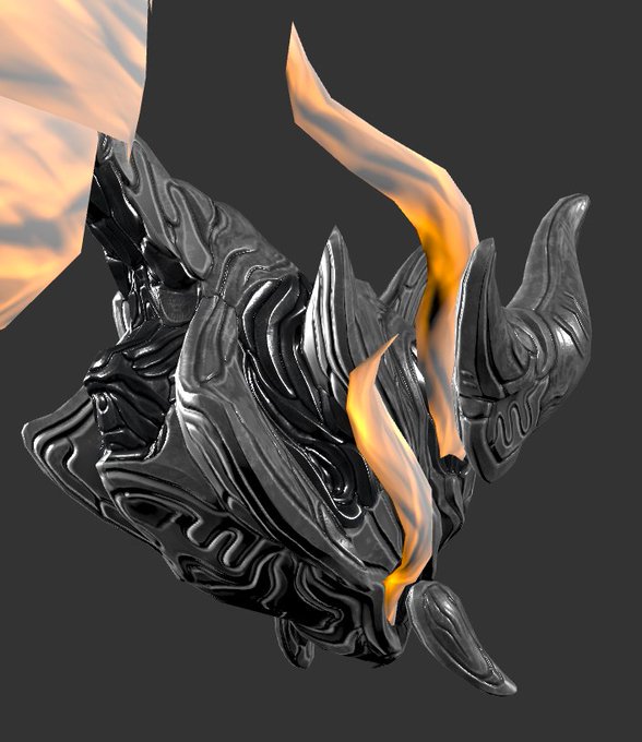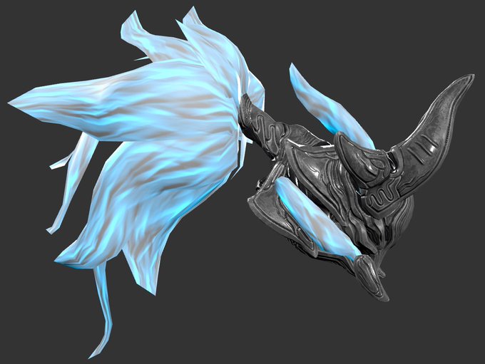 Added some energy wisps between the floating horns/tucks. Tennogen's viewport doesn't have the prettiest render, but it gets the point across. I'm liking the way it's turning out. #Warframe #Tennogen #Revenant #WIP
