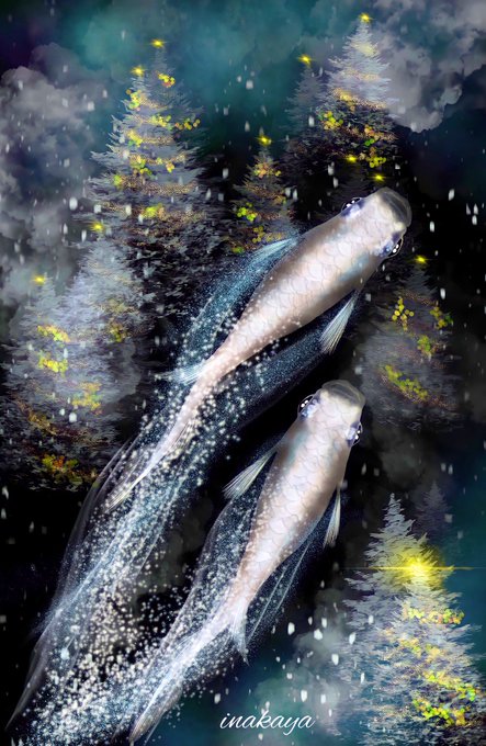 のめだかをイメージして描いてみました、冬の夜に流れ星が飛んでいくイメージで描いてみました☺️