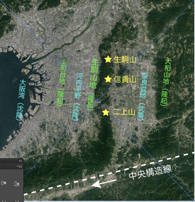 サヌカイト類が造る「おむすび山」は香川県外にも点在。関西では二上山、信貴山、生駒宝山寺、西宮市の甲山など。この前3者は生駒山地、すなわち300万年以降の隆起帯の上に乗る。1300万年前の巨大なマグマ岩体が浮力で上昇していた所が弱線となって隆起したのかと想像してしまう?#瀬戸内海のヒミツ