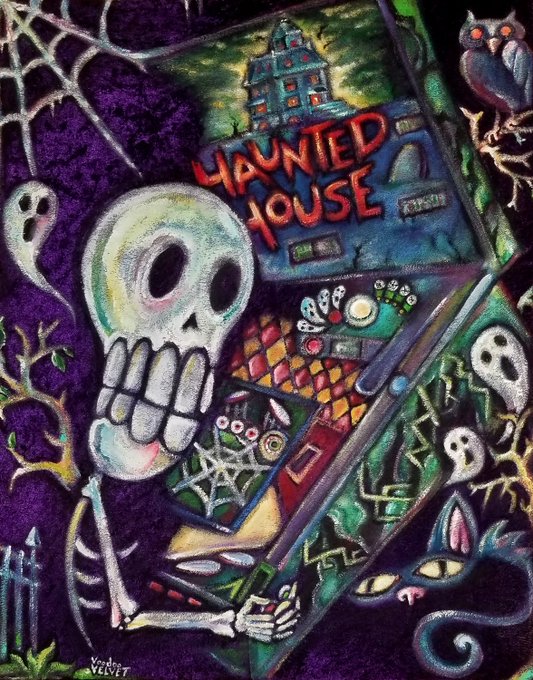 #VoodooVelvet #VelvetPainting #Pinball #Art #Pop #Surreal #Haunted #House