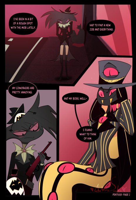 Big news! PentKiss, my Pentniss comic will start updating on Valentines Day at 7pm! It's a total of 24 pages long and will update 2 pages at a time (hopefully) once a week. Stay tuned 🕷️💕🐍 #PentNiss #Arackniss #HazbinHotelFanart #hazbinhotel