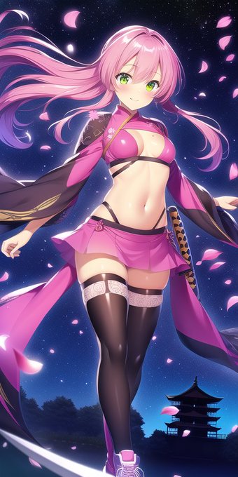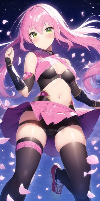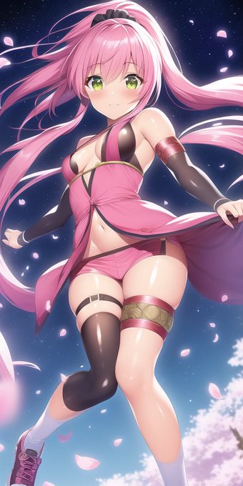 桜舞うピンク髪スパッツへそ忍者 忍者? #NovelAIDiffusion #NovelAI