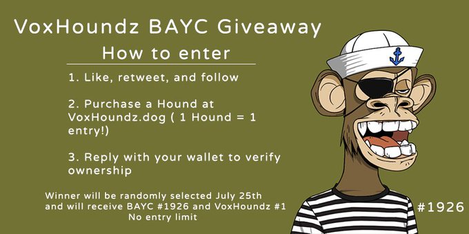 🎁 We are giving away #bayc @BoredApeYC #1926 and VoxHoundz #1 #NFT 🎁