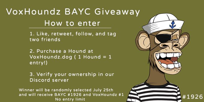 Prize: 🎁 #BAYC #1926 & VoxHoundz #1 to the winner! 🎁