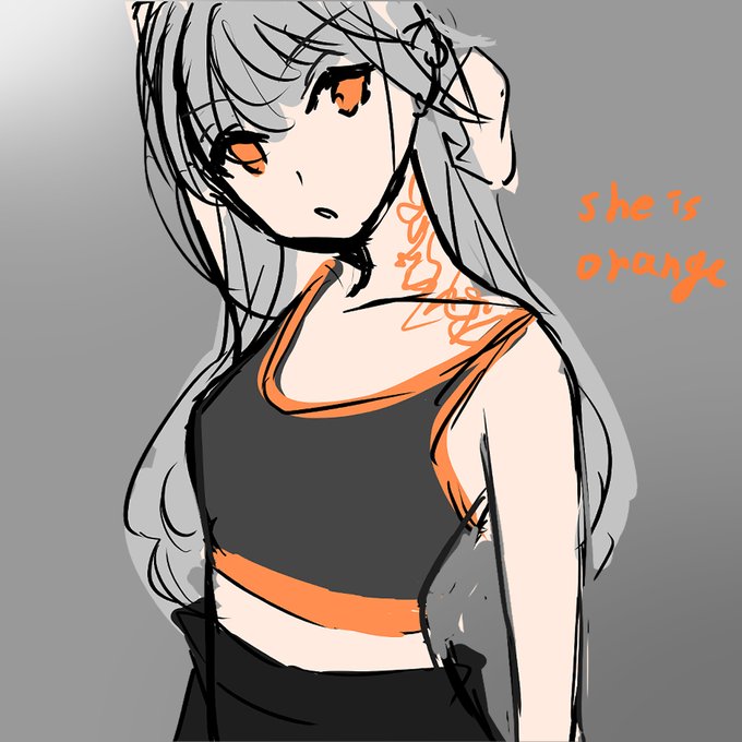 オレンジの娘のカラーラフというか大ラフですかね 大人っぽくしようとか、可愛くしようとか考えてたので顔が安定してないですね