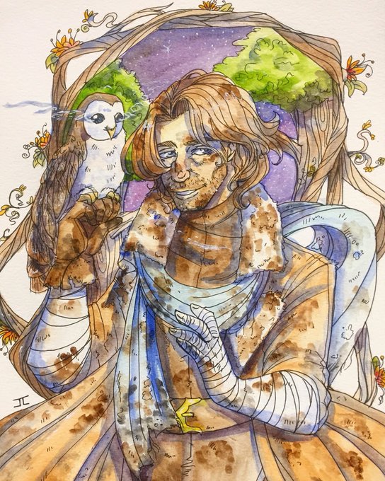 Just finished this good boy! And frumpkin as an owl! #CriticalRoleFanArt #criticalrole #geekandsundry #calebwidogast #frumpkin #art #painting #watercolor #critrole #wizard #dnd #dungeonsanddragons