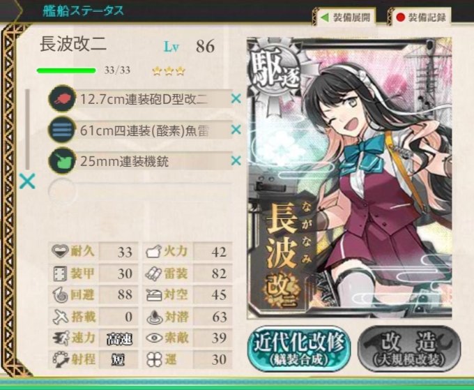 ずっと改で放置状態だったけど改二に改装!