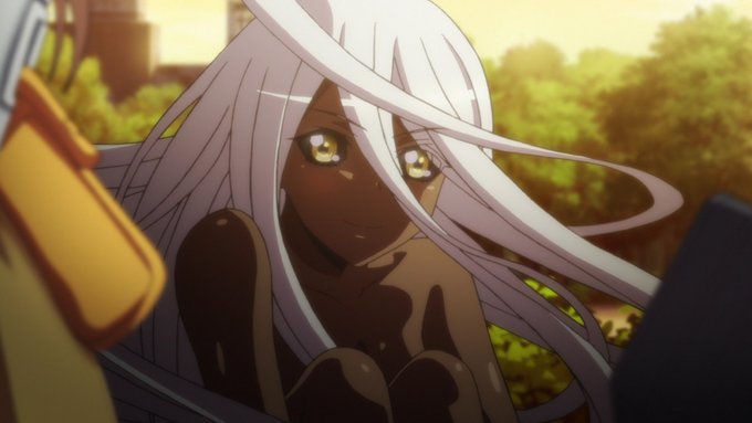 The white hair girl of the day is Doppel from Monster Musume.