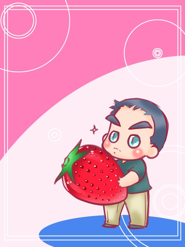 「いちごなら持てるぞ」 筋トレの話題でふと思いついたので描いた。ほんとはりんごも持てる。