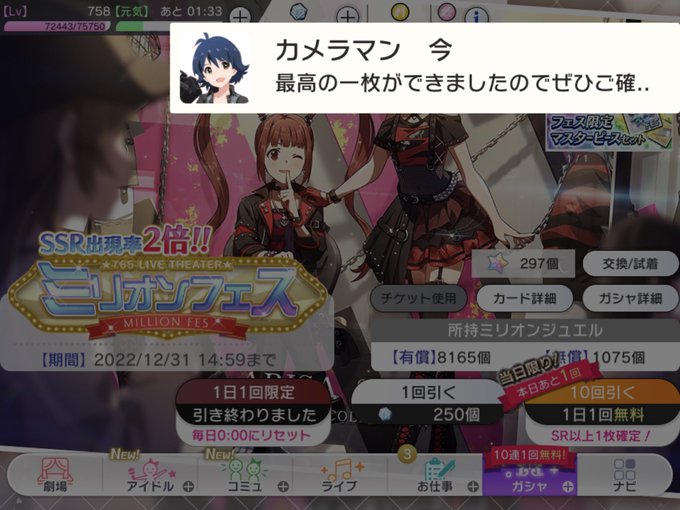 140連でSSR2枚 無事に担当引けたけど、SRも全然でなかったし、 気分良くねーな