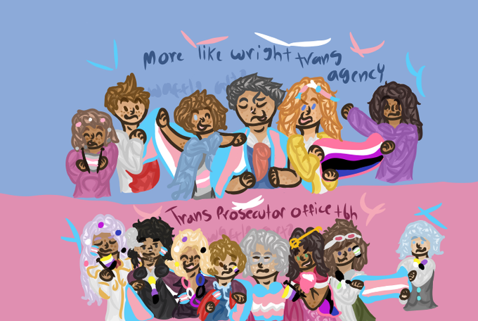 Very late but hope yall had a great trans day of visability day!! My hcs with these funky lawyers :)) #aceattorney #tdov