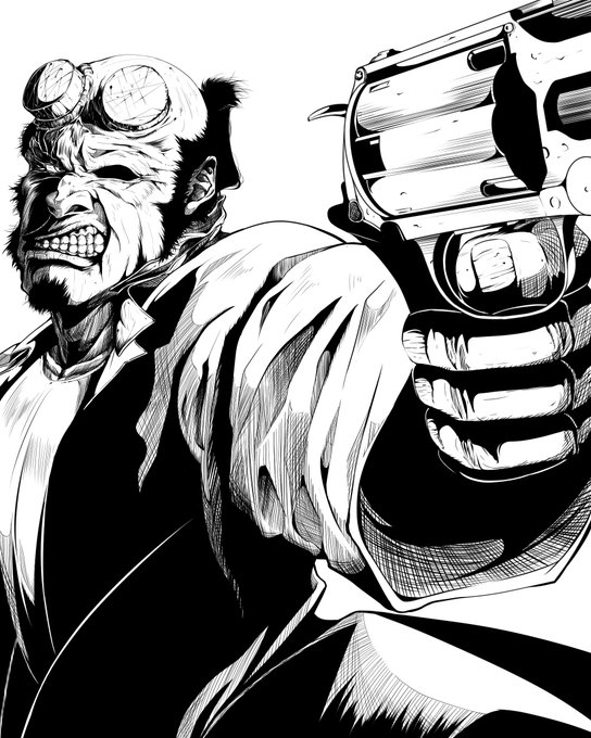 だいぶ昔に練習で描いた映画ヘルボーイのワンシーンです 昔の絵を見るとその時何に行き詰って練習したのか思い出します(笑) #ヘルボーイ #イラスト