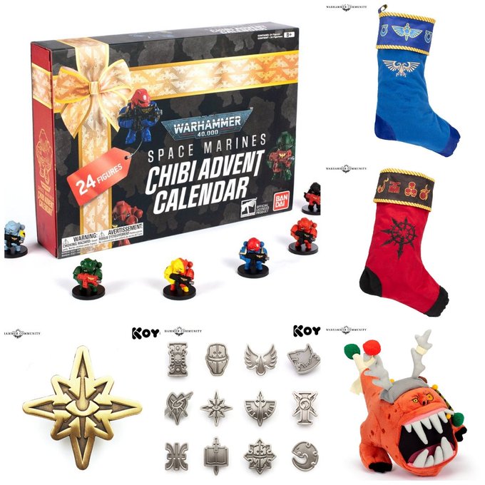 本日発売のクリスマスグッズ、そして本日予約開始のエイジオブシグマー新製品とミドルアース新製品はこちら!アドベントカレンダーには24種のチャプターと自分でペイントできる1つ、合計25体のチビマリーンが入ってますよ