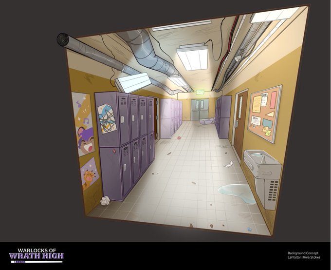 Some heroes are forged in fire. Our heroes are forged by hallways that haven't been renovated in what seems like centuries. || Wrath High School Background Concept by @Lahtidraws.