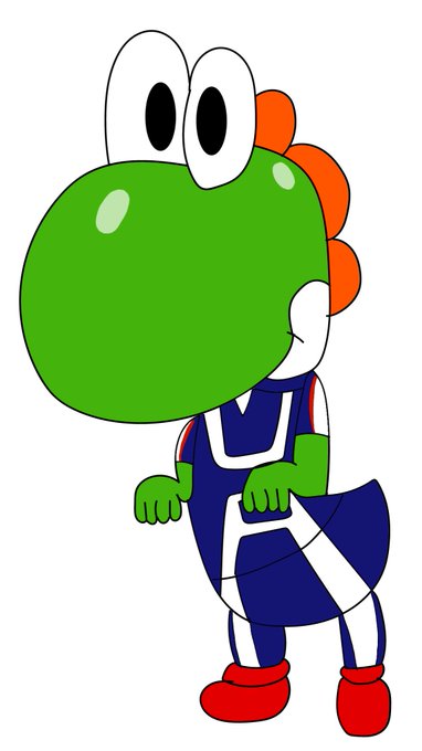 Whenever I watch My Hero Academia and Tsuyu Asui is onscreen, I can't help but think that she reminds of Yoshi, so I drew Yoshi as Asui.