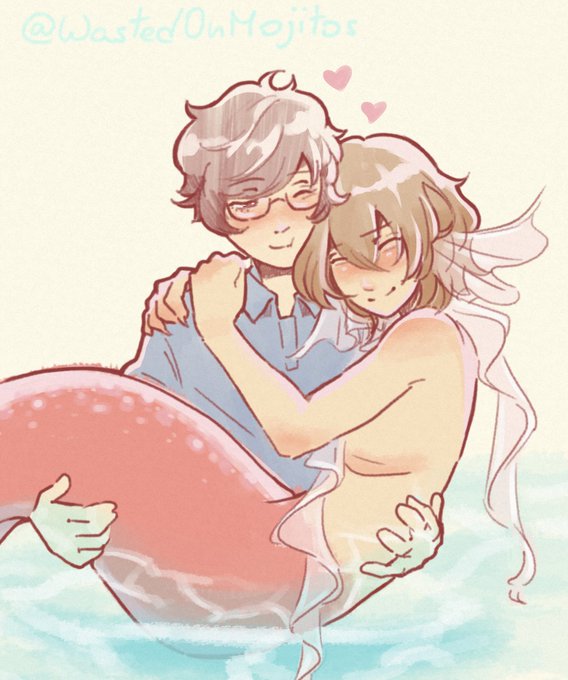 akira the househusband making sure his bathtub-ridden merhusband is thriving 🙏😔💖 with floofy heart and star shaped souffle pancakes 🥺🥞✨