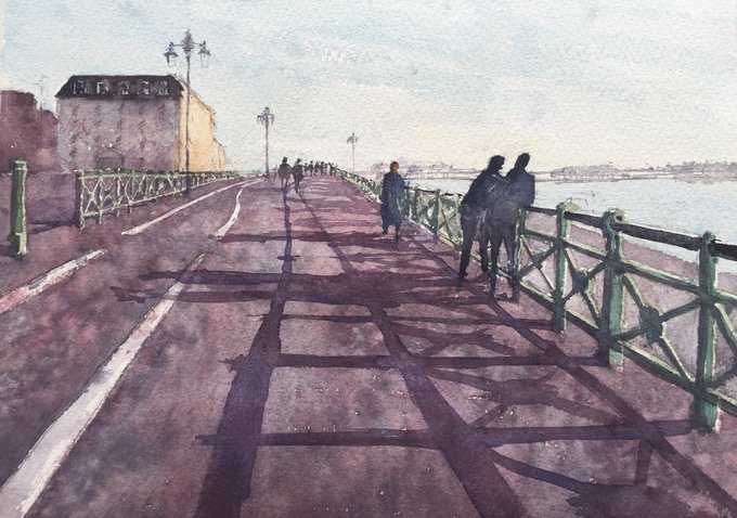 #New #watercolor #painting of #Brighton #seafront looking west to Palace Pier https://t.co/74OgauqgM5