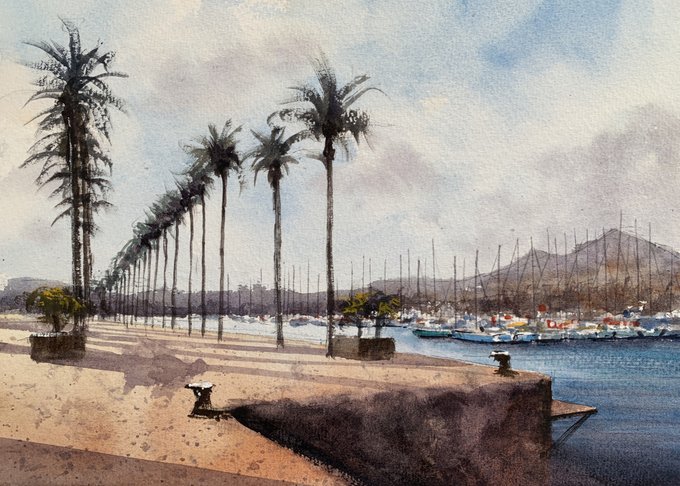 I was supposed to be in #Spain this week. As I can't be, here's a quick #watercolour #painting some Palm trees in #Cartagena. So look forward to seeing them in person one day! https://t.co/FWXUV9AuZ9