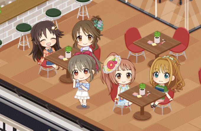 このときの藍子ちゃんの制服はリボンタイプだったけど、後の未央ちゃんのカードのときはネクタイ型だった。