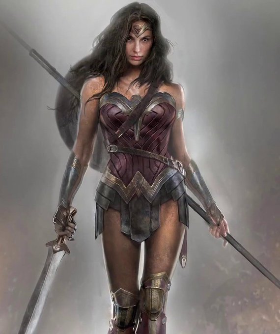 @SupesBatsy For a moment, I thought she always carried two swords in the concept art designs. But, it seems like she's carrying the kryptonite spear here