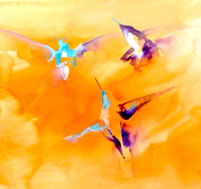 Some hummingbird colour and magic for Tuesday. watercolour/gouache