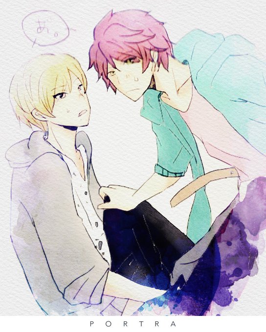 休憩中のバンドマン達~!! (CP注意) アメレモのバー衣装可愛いよね #カクプリイラスト #カクプリ好きさんと繋がりたい