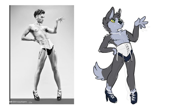 Commission for @tornpup being a shy sissy puppy! Trying on new dresses he got in the mail. :3