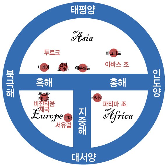 오늘날 보면 진짜 어이없고 이뭐병같은 지도지만 (ㅓ)모양으로 아시아를 우측으로 둔다면 간략화되서 그렇지 지리적으론 사실적인 지도란걸 알수있습니다.