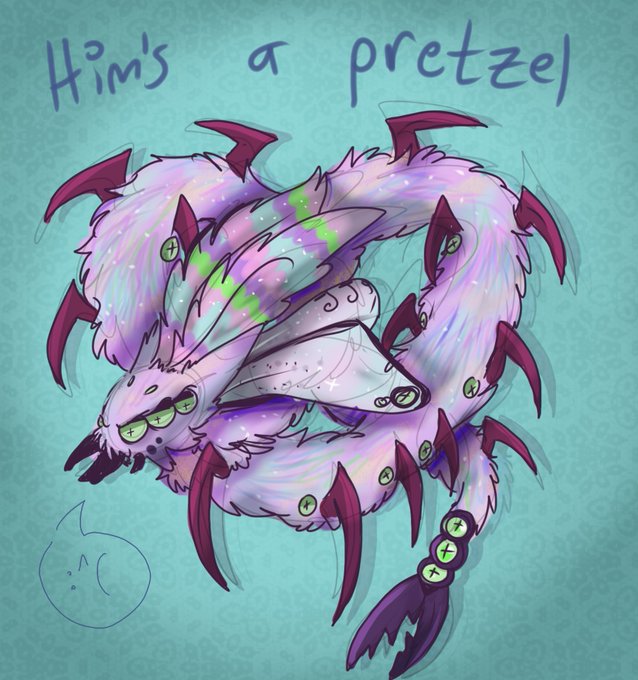 Quick little doodle of my Kivva, Thallius. Poor centipede-moth havin' ass is twisted into a pretzel. Sad world.