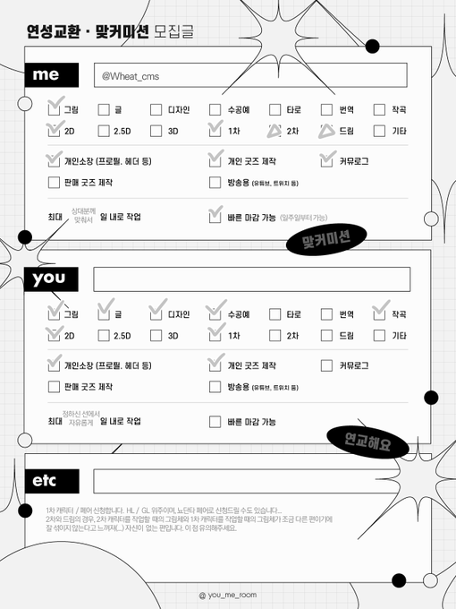 연성교환 / 맞커미션🙌 일정이 마무리되면 천천히 찾아갑니다 감사합니다... ^_^ 안내 페이지 - https://t.co/ywxCnUh5PA 폼 - https://t.co/sek56bJ8ut