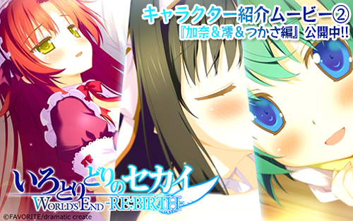 【再掲載】本日PS Vita版『いろとりどりのセカイWORLD’S END -RE:BIRTH-』新規追加CGを含むキャラクター紹介ムービー第二弾『加奈&澪&つかさ編』が公開! http://t.co/SzZOrdDc7t