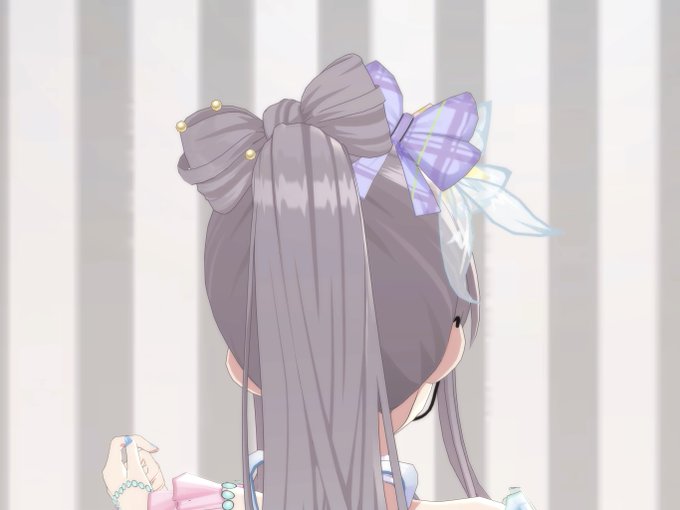 そ、それ髪の毛を後ろでリボンの様に結んでい、る。、の…?
