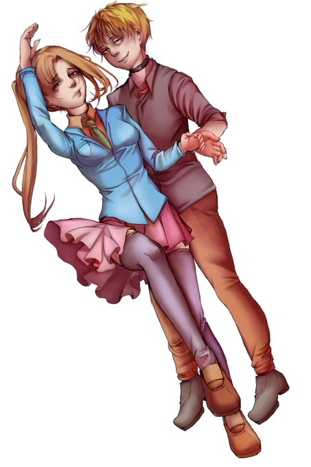 I think [hope] she doesn't follow me here but I'll probably show it to her early anyways. Buddy wanted fanart of @lastdinosaurs for her birthday. I probably got none of their personalities right but I hope it still looks alright!