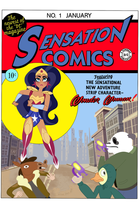 A redraw of Harry Peter's cover for Sensation Comics #1 done in the style of @DCSHG