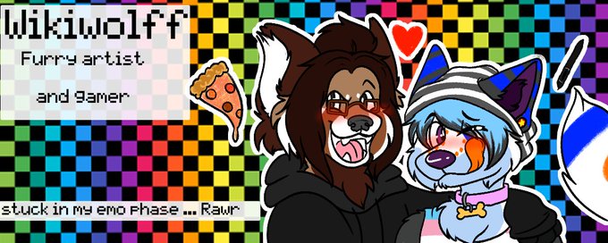 New Twitch Banner! Featuring my goofy boyfriend @T_h_e_Red_Panda !! Us being gae and doing emo crimez >:333