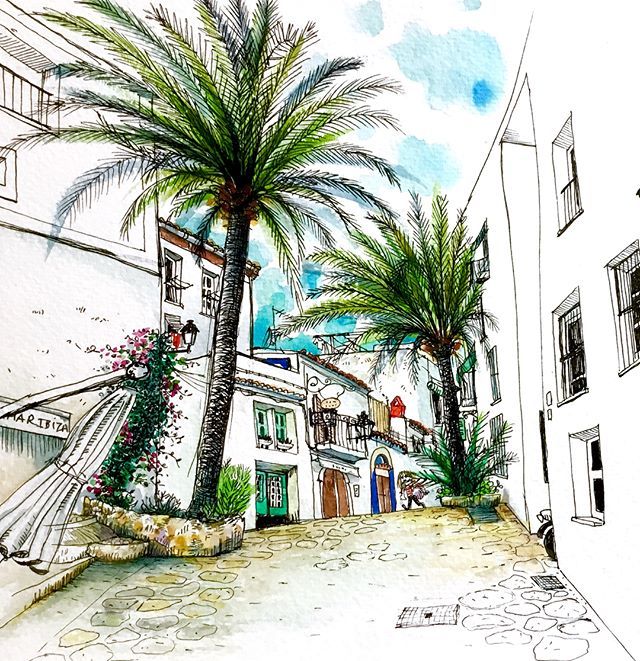 Creative work from @annsophi_d Charming street in Ibiza old town. I’ve been walking there thousands times as a teenager.