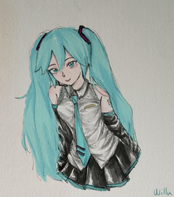 Miku Traditional lineart Coloured with ibis paint