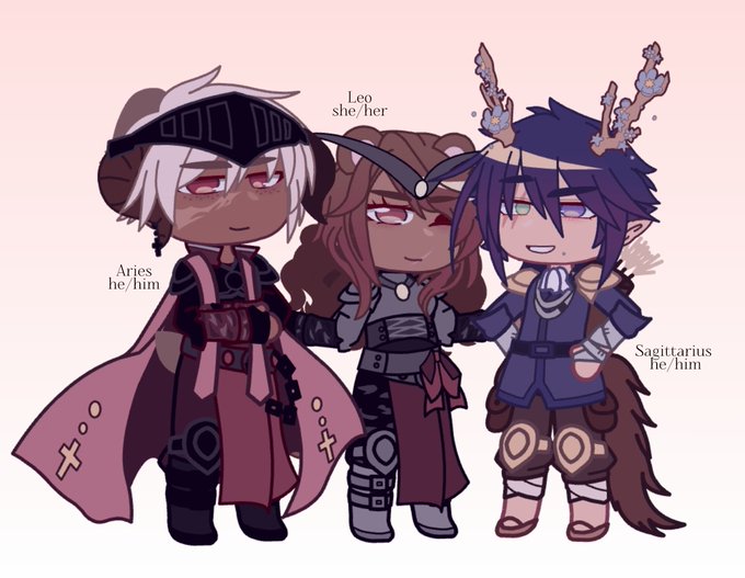 Earth signs + scorpio are done finally...8 more to go 😀 btw in my au, their outfits are signed whatever or not, their a "combat" sign (basiclly does more fighting then magic), like Scorpio and Taurus here are combat signs as you can see by their armor, while virgo does magic
