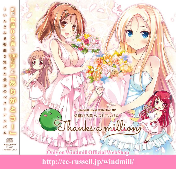 佐藤ひろ美さんが歌うういんどみる楽曲全11曲を完全網羅した『佐藤ひろ美ベストアルバム「Thanks a million」』は期間限定生産品としてういんどみるオフィシャルウェブショップで好評発売中!