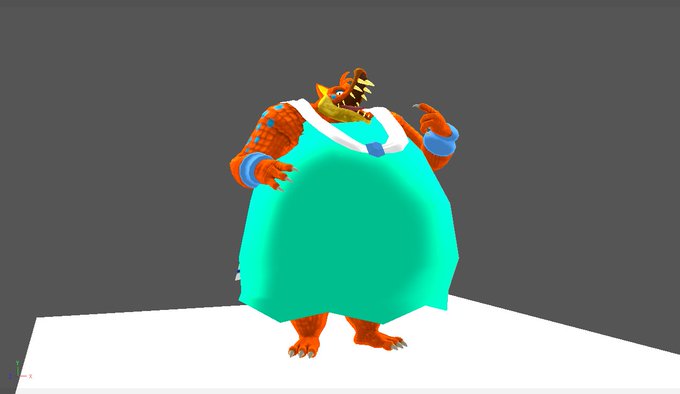 A pre-rendered model of Maximus (@FurryLot ) wearing a Muumuu. But we changed it with this dress (right).