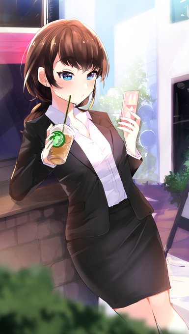 【skeb絵】 リクルートスーツのリクエストいただきました☺ 久々に背景込みでの絵を練習させていただきましたでへへ!