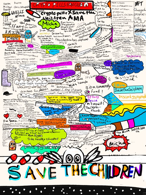 These are doodled notes from the room "Save The Children/Crypto-pills by Micha" hosted by Micha, KRZTA, LUVELLI,Tiffany,Frank,,... and mazing ETTORE from Save The Children organization ... in Sep15, 2021 Hong Kong. @pills_crypto @MichaKlein1 .https://t.co/erRM7bePWR via @opensea